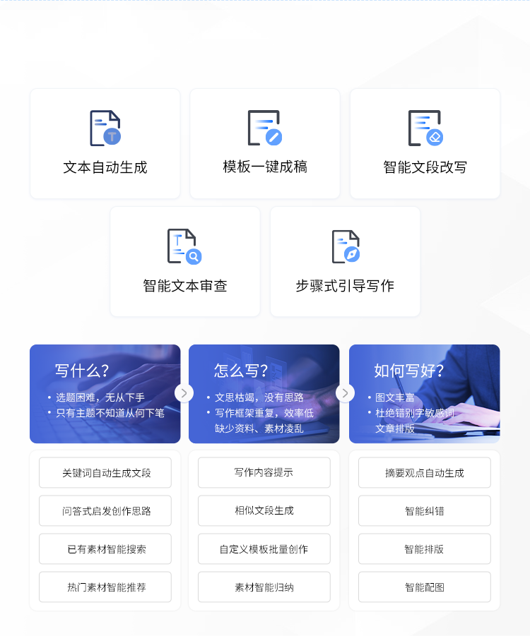 evo真人视讯数据智能写作覆盖写作全场景,为企业和个人给予更智能更高效的写作平台,提高写作效率
